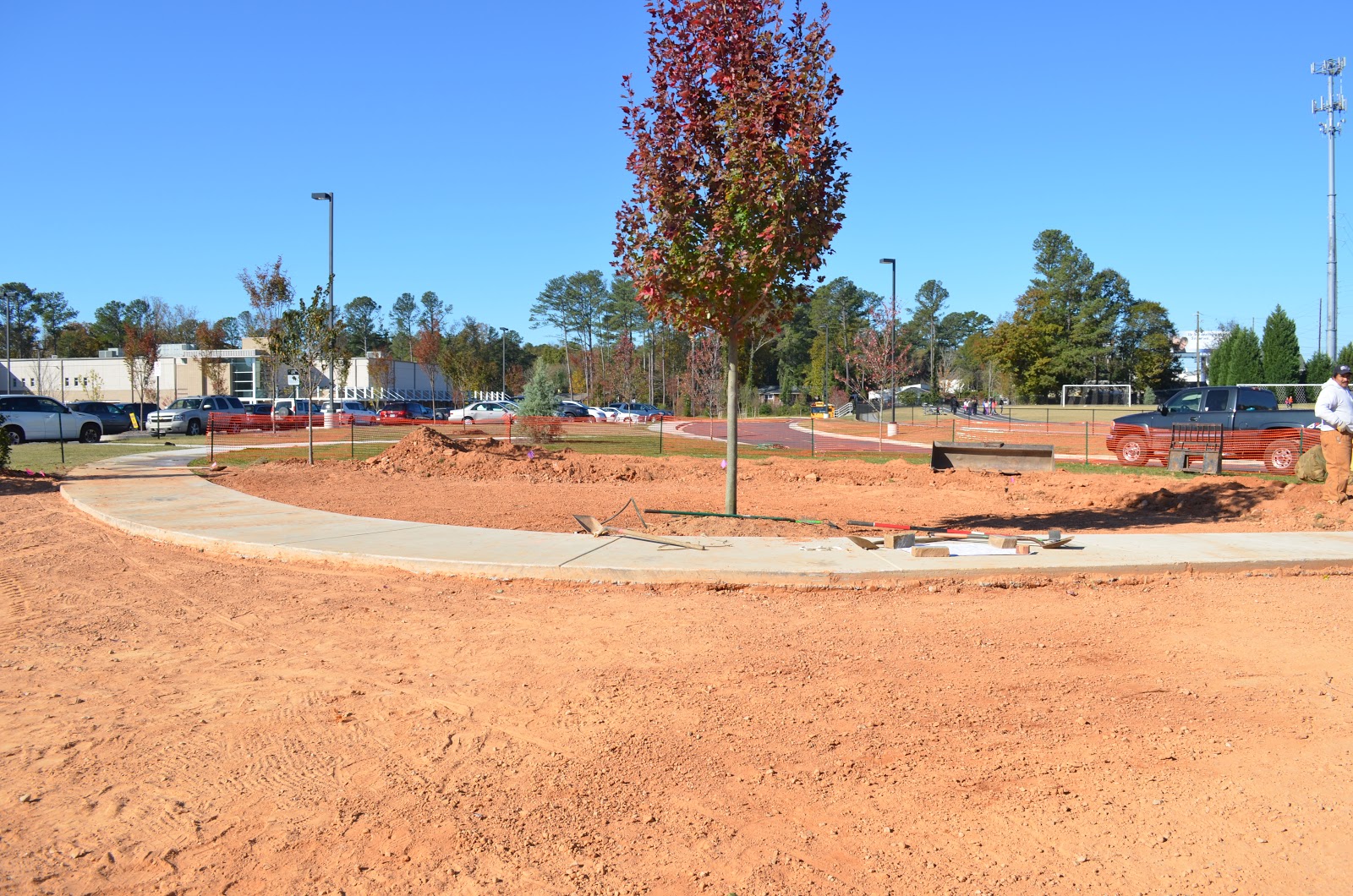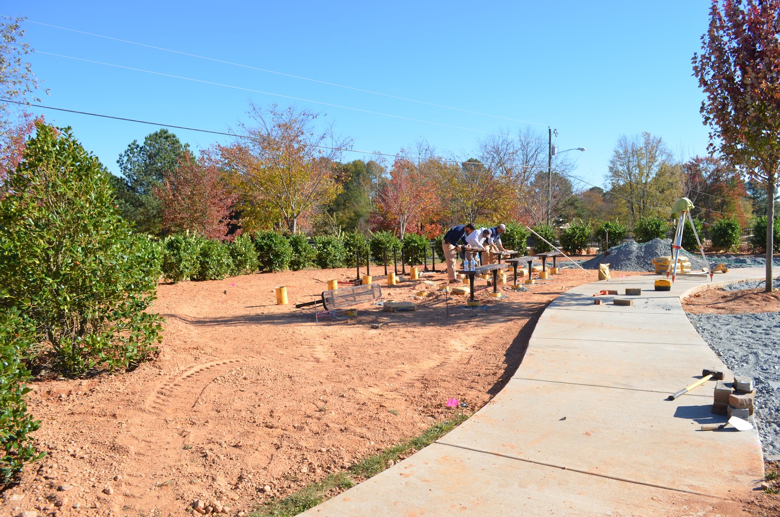 We’ve found homes within the classroom design for plants that were already a part of the landscape at East Side, but we’re also adding many new specimens to offer a buffer from the road, eventual shade, and a pleasant spot for students & teachers to learn or just relax.