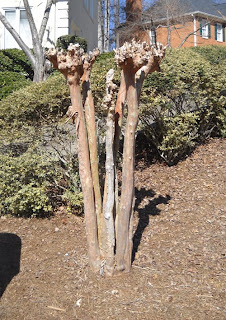 Seriously? I am amazed and appalled every time I see this, and believe me, I see it over and over again while I’m evaluating properties or simply driving through the areas where I work and live. A tree should not look like it is in pain, but when I see pruning jobs that leave Crape Myrtles like the ones above, I am reminded of the gnarled, arthritic hands we’ve all seen in horror films — not exactly what you should be shooting for when designing a warm, welcoming landscape.