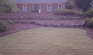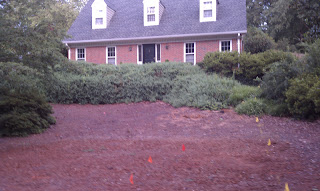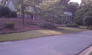 And we so continue with our yard makeover project of the week. On Day 3 Team Turf installed sod in the front yard, continued to pull out unwanted shrubs and dangling limbs, and finished the day by adding fresh pinestraw, and cleaning up the mess we made in the progress!
